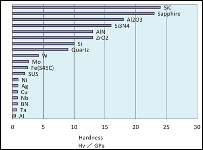This graph displays the hardness of various materials measured by Vickers hardness.
