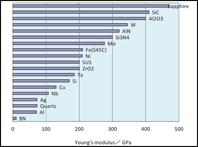 Compared to other materials, ceramics, tungsten and molybdenum have a very high Young’s modulus.