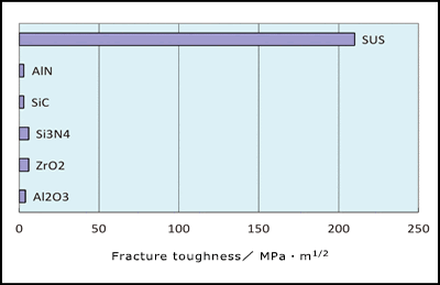 Generally, ceramics are extremely brittle. However, among them, zirconia has high fracture toughness, and is often used in kitchen knives, scissors and wrecking balls.