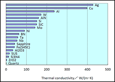 Certain ceramics like aluminium nitride and silicon carbide have high thermal conductivity whereas others such as zirconia have very low conductivity. Tungsten and molybdenum conduct heat comparatively well.