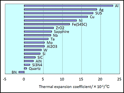 Since ceramics, tungsten and molybdenum have low thermal expansion coefficient, there is only a minor change in shape in response to temperature variation.